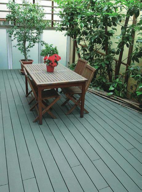 Belleza de larga duración con colores que no existen en la madera . • Sistema completo de fijación con clips y rastreles con regata. • Sección maciza y mayor medida. • Sistema de fijación invisible. • Superficie lisa y elegante.